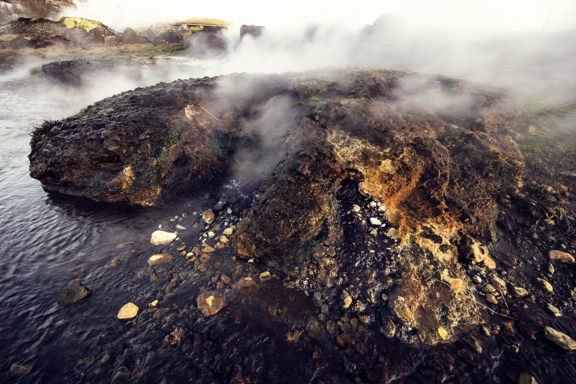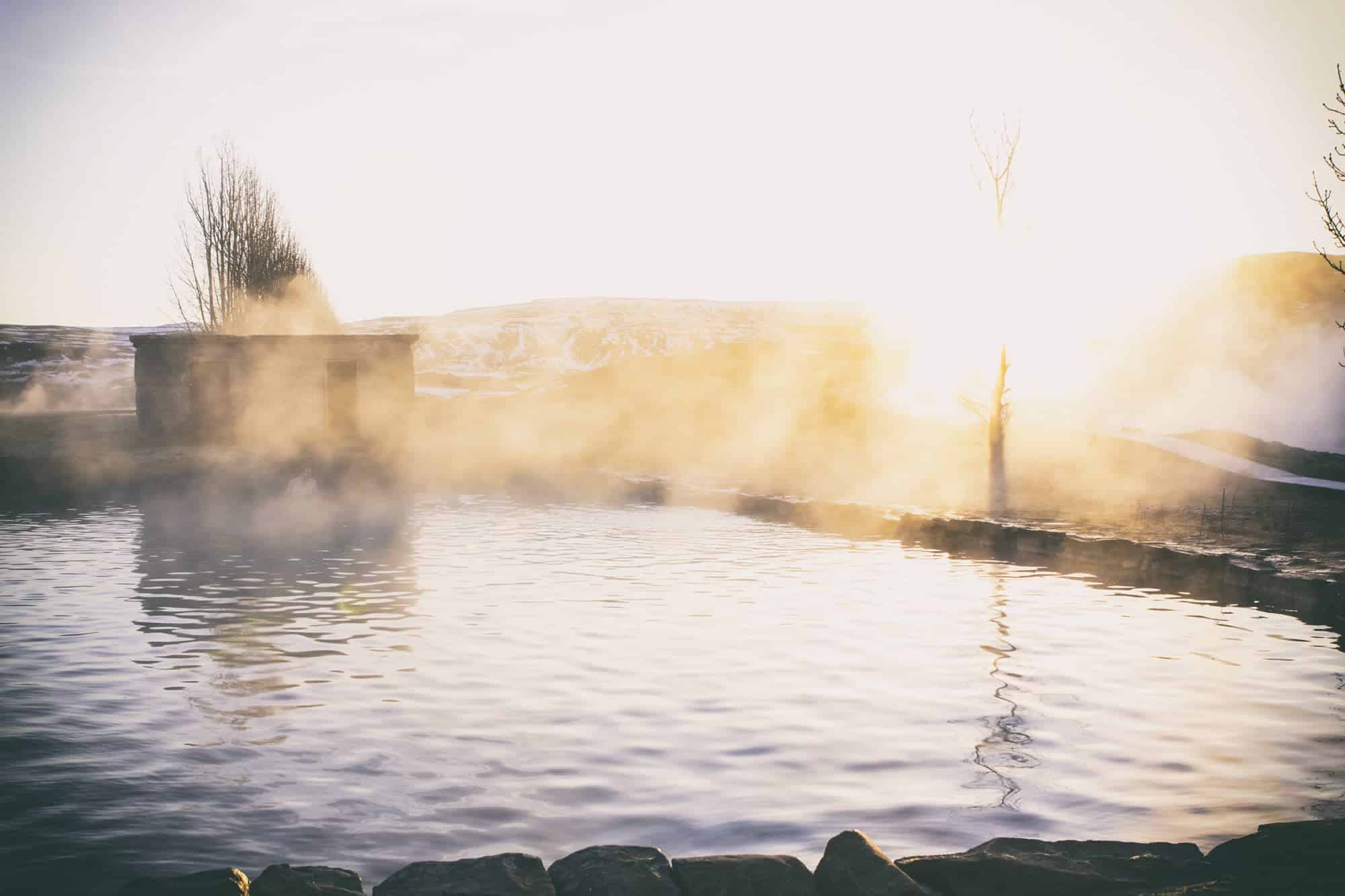 The location of the Secret Lagoon is in a huge and very active hot spring area. That means the pool is fed by hot water from natural hot springs nearby. It consists of very clear ground water. So if you go there, you will see what most Icelanders think of when you say ‘hot spring’.